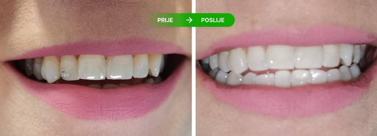 Produžena kruna zuba, uređeno zubno meso i saniran razmak. Sve u jednoj posjeti. Foto: Dental Centar Jelić
