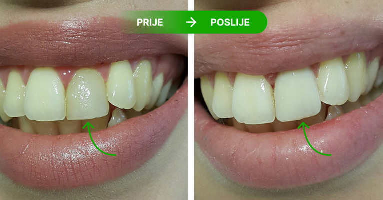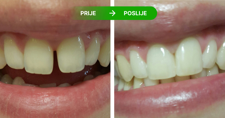 Produžena kruna zuba, uređeno zubno meso i saniran razmak. Sve u jednoj posjeti. Foto: Dental Centar Jelić